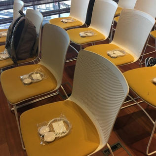 La presentación del proyecto para la Asociación de ex-alumnxs del Máster en Historia del Arte Contemporáneo y Cultura Visual (finalmente AMACUV), que tuvo lugar el 11 de junio de 2019, contó con la participación del colectivo artístico CANDELA en forma de exposición y performance. En Acción 10, mediante formatos ya incubados en otros de sus proyectos, CANDELA propuso un recorrido a lo largo del cual el participante pudo redescubrir y acercarse de una nueva manera al edificio del Centro de Estudios del MNCARS. A lo largo de Acción 10, en forma de audioguía, una voz nos acompaña y rige cada uno de nuestros movimientos en un ejercicio de inmersión sensorial que resulta en una experiencia estimulante y diferente del espacio ya conocido. La firmeza de las sugerencias emitidas por la audioguía contrastan con la variedad de resultados que pueden obtener las mismas en función del receptor, que mediante este estímulo auditivo emplea su mirada y su corporeidad para transformar su relación con aquello que le rodea. Acompañando a la actividad se expusieron en el aula del Centro de Estudios materiales del archivo de CANDELA, con el fin de dar a conocer al colectivo a los asistentes a la presentación de la Asociación a través de algunas de sus acciones anteriores.